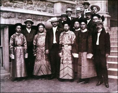 中国在世博会上官方正式亮相的首张照片:副都督黄开甲(前排右三)会见世博会官员