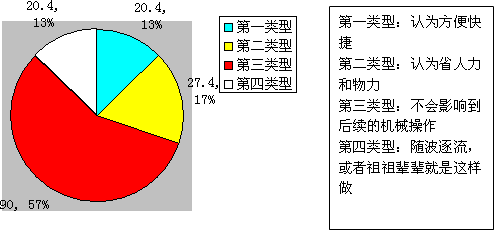 从图中,我们可以看出,绝大多数的农民现行处理方式仍然是焚烧秸秆,而且其他处理方式使用者甚少。