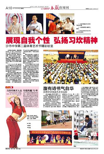 今年是沙市中学70周年校庆。在一代代习坎人的不懈努力下,沙市中学秉承素质教育的优良传统,重视学生的体育和艺术教育。曾多次被评为全国体育传统项目学校,被授予“北京奥运会奥林匹克教育示范学校”光荣称号,曾获得湖北省中学生篮球赛男女冠军和重点中学田径比赛总分第一名。这里不但走出了五位院士,还走出了著名歌唱家梦鸽、电影演员袁泉和曾黎等艺术人才。