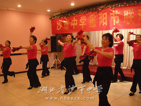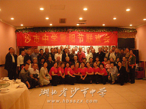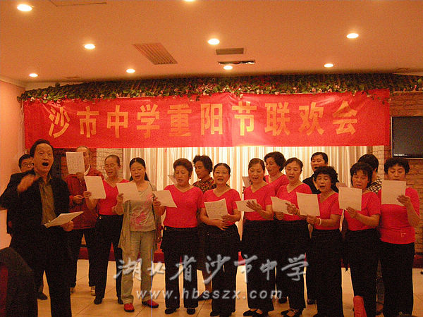 2011年重阳节之际,沙市中学组织离退休老同志在老天宝酒楼举行联欢会。联欢会上,老同志们兴致勃勃地表演了舞蹈、京剧清唱、诗歌朗诵、独唱等节目。会后并举行了晚宴。本次活动由学校工会组织,学校领导邓北平、黄炜、赵文华、朱胜祥、张志礼参加了联欢。
