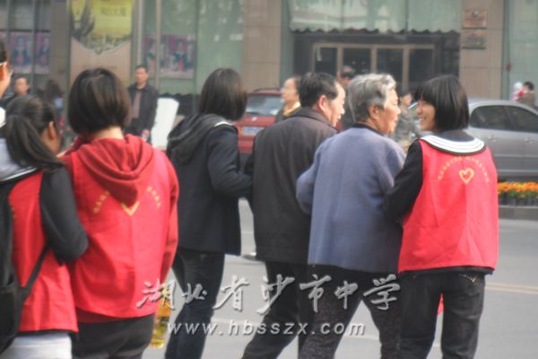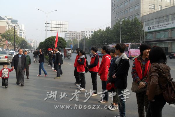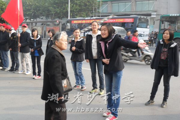 10月30日上午9点,高二(14)班同学在班主任张群武老师的带领下走上街头,对出行的市民进行文明交通的劝导活动。同学们积极主动、热情大方地劝导来往行人遵守交通规则,过马路应走斑马线。张凡、黄韵霓、翟荣、张思琦、徐慧敏等同学在活动中表现尤为热情主动,他们不仅耐心地劝导行人注意交通安全,而且热心地搀扶腿脚不便或是手提重物的老人过马路,还一直把他们安全地送到车上,展现了我校学子的良好风貌。由于我校的交通文明劝导活动一直坚持开展,在社会上引起了良好的反响,不少市民看到我校的学生值勤都会露出会心的微笑,并主动地遵守交通规则。