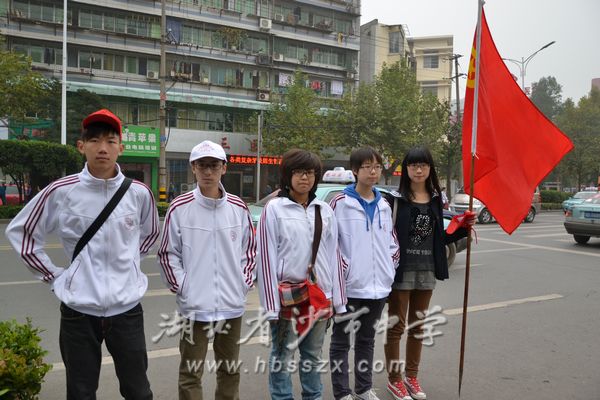 11月6日上午,高二(12)班学生在团委书记张珺和班主任叶世安老师的带领下走上街路开展交通文明劝导活动。12班的同学热情大方,积极主动,对来往的行人进行友好劝导,鼓励行人遵守交通规则,文明交通,安全交通。