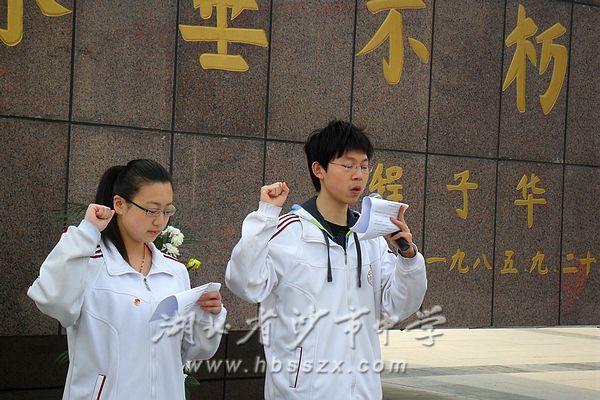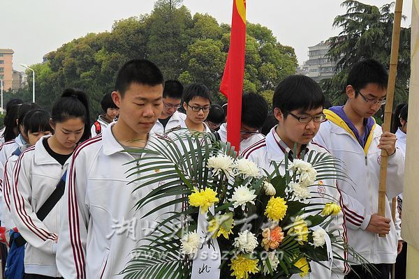 2012年4月3日,清明节前,湖北省沙市中学学生会60余名学生怀着对革命先烈的无限哀思来到烈士陵园举行庄重的祭奠仪式,深切缅怀为民族解放而牺牲的仁人志士。