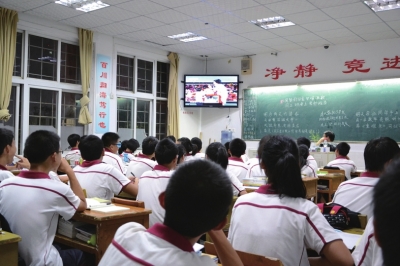 在沙市中学,同学们都在聚精会神地欣赏,看到精彩之处都拍手叫好。不少同学看完后,发表了自己的看法。