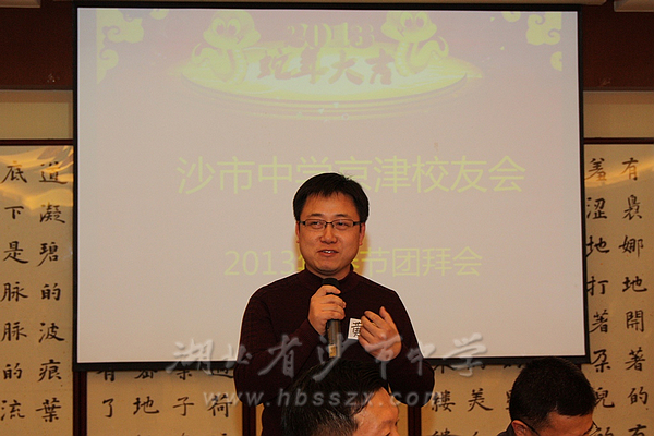 1月13日晚6点,沙市中学京津校友会,在清华大学近春园举办了2013新春团拜会,会长徐芳文、副会长顿世新、方红卫、喻杉、王军、田德军,以及来自北京和天津的共100多位校友参加了此次活动。沙市中学副校长黄炜、荆州市人民政府驻京办主任潘伦纯也应邀出席了本次活动。秘书长李亚平总结了2012年校友会的活动情况,汇报了2013年的工作计划,并对京津校友会的网站建设和基金会建设进行了介绍。会上每位校友也都介绍了一下自己的基本情况,通过这种形式,增进了校友之间的友谊,加强了校友之间的沟通。会后有很多校友表示,今后要多多参加校友会的活动,并希望通过校友会的平台,为校友创造更多交流和合作的机会。