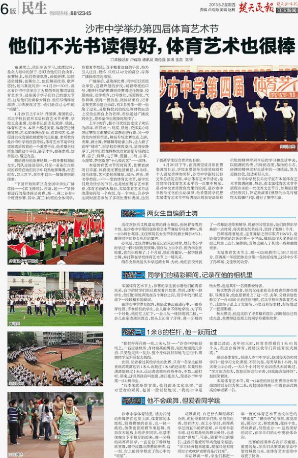 《楚天民报》5月2日第六版:他们不光书读得好,体育艺术也很棒
