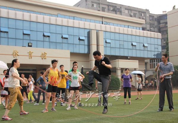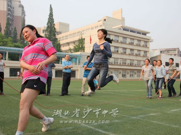 ——我校工会举行教职工跳长绳比赛