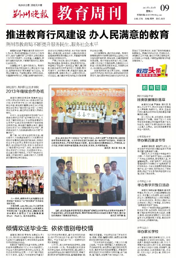 《荆州晚报》6月8日第9版:图片报道沙市中学诵读比赛