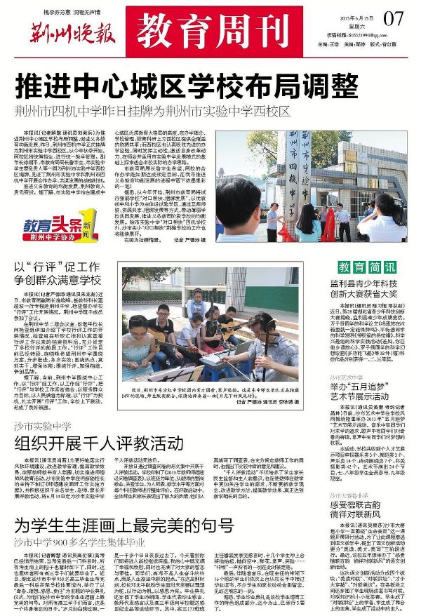 《荆州晚报》6月15日第7版:沙市中学900多名学生集体毕业 为学生生涯画上最完美的句号