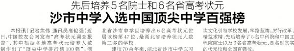 《楚天民报》6月21日第2版:沙市中学入选中国顶尖中学百强榜
