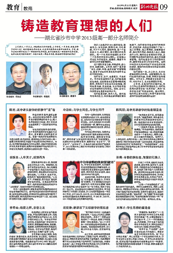 《荆州晚报》6月22日第9版:铸造教育理想的人们