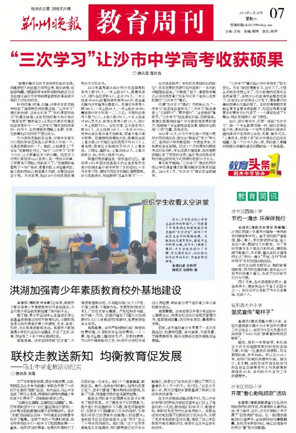 《楚天民报》6月27日第5版:三次学习让沙市中学高考收获硕果