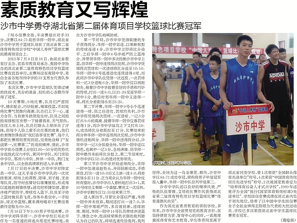 《楚天民报》7月22日第4版:素质教育又写辉煌